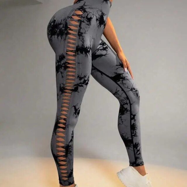 What sets our leggings apart is their unique side hollow design, which adds a touch of allure while maintaining sophistication. The high-quality blend of nylon and spandex provides durability, stretch, and breathability, ensuring a long-lasting product that keeps you comfortable. The vibrant tie-dye pattern ensures you stand out, combining contemporary style with classic comfort.