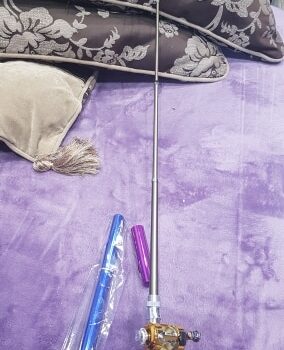 I love the black fishing rod, it looks like a pen and extends into an actual sized fishing rod.. Great product for the money!