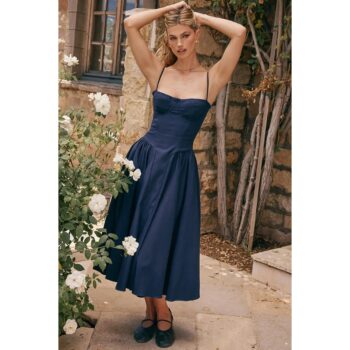 Elegant Summer Spaghetti Strap A-line Midi Dress for Women