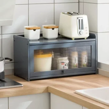 Rustic Gray Wood Coffee Table with Sliding Door and Adjustable Shelf